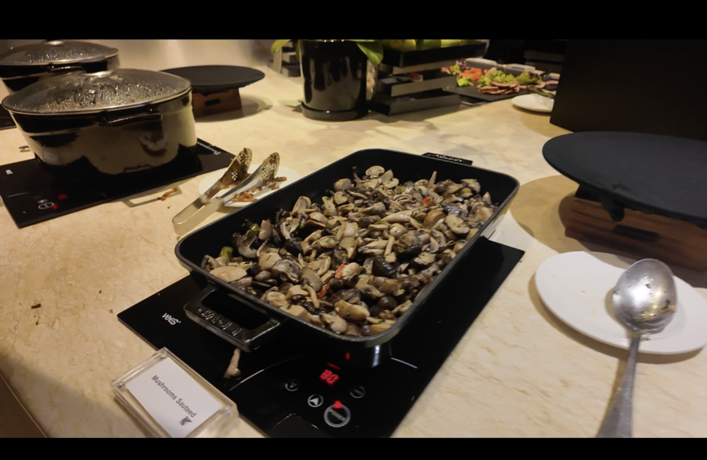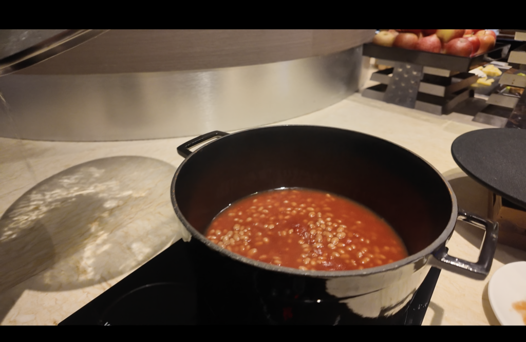 コールドミールとしてはハムやチーズ、巻き寿司なども用意されていました。残念ながらスモークサーモンは撮影時には無くなっていました…。後から追加してもらえたかは確認できていません。写真には写っていませんが、サラダ類も種類豊富でした。