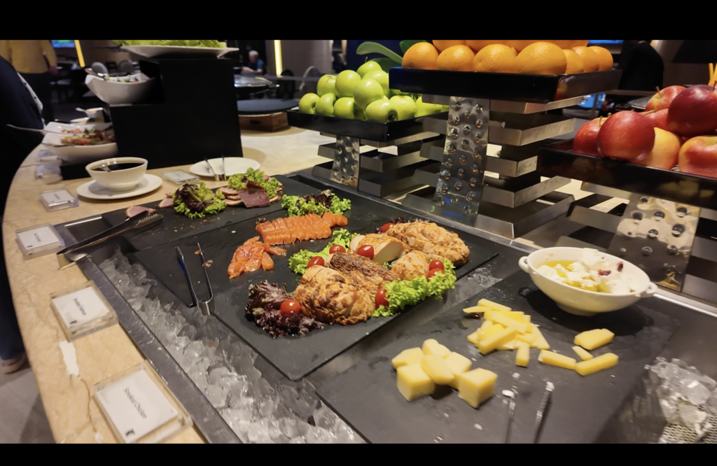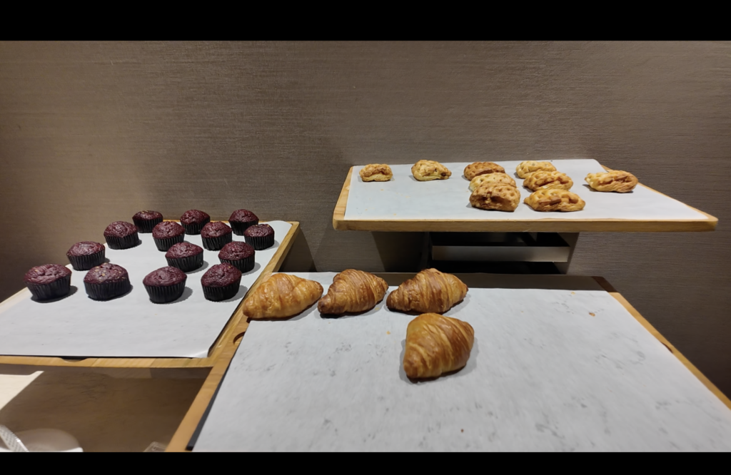 エグゼクティブラウンジは朝食、アフタヌーンスナック、カクテルタイムの3つに分かれています。今回はアフタヌーンスナックの時間には滞在できませんでしたので、朝食とカクテルタイムをご紹介します。ラウンジ内はとても広々としていました。私が滞在した際は人も多く無く、とても過ごしやすい環境でした。ただ、冷房がとても効いていて寒いくらいでしたので、上着を持っていくと良いと思います。17時からのカクテルタイムでは食事のメニューがしっかりと用意されていました。